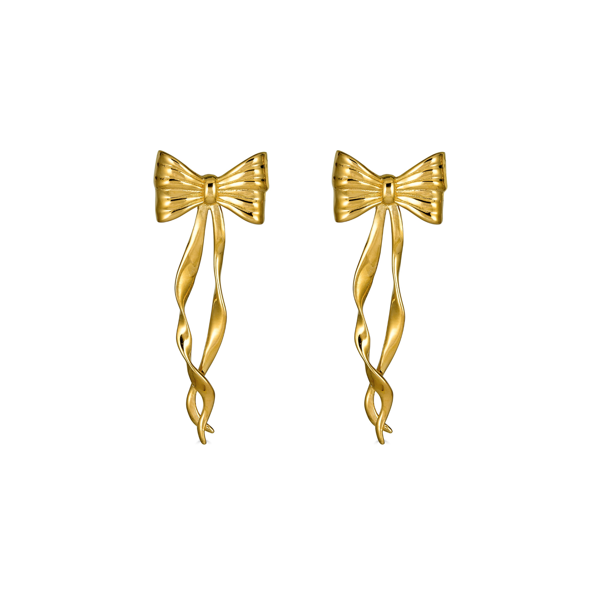 Make your heart flutter with our rendition of a pair of bow ribbon earrings. These earrings capture the luxury of style with the grace of a bow, a timelessly classic look with a modern twist.
