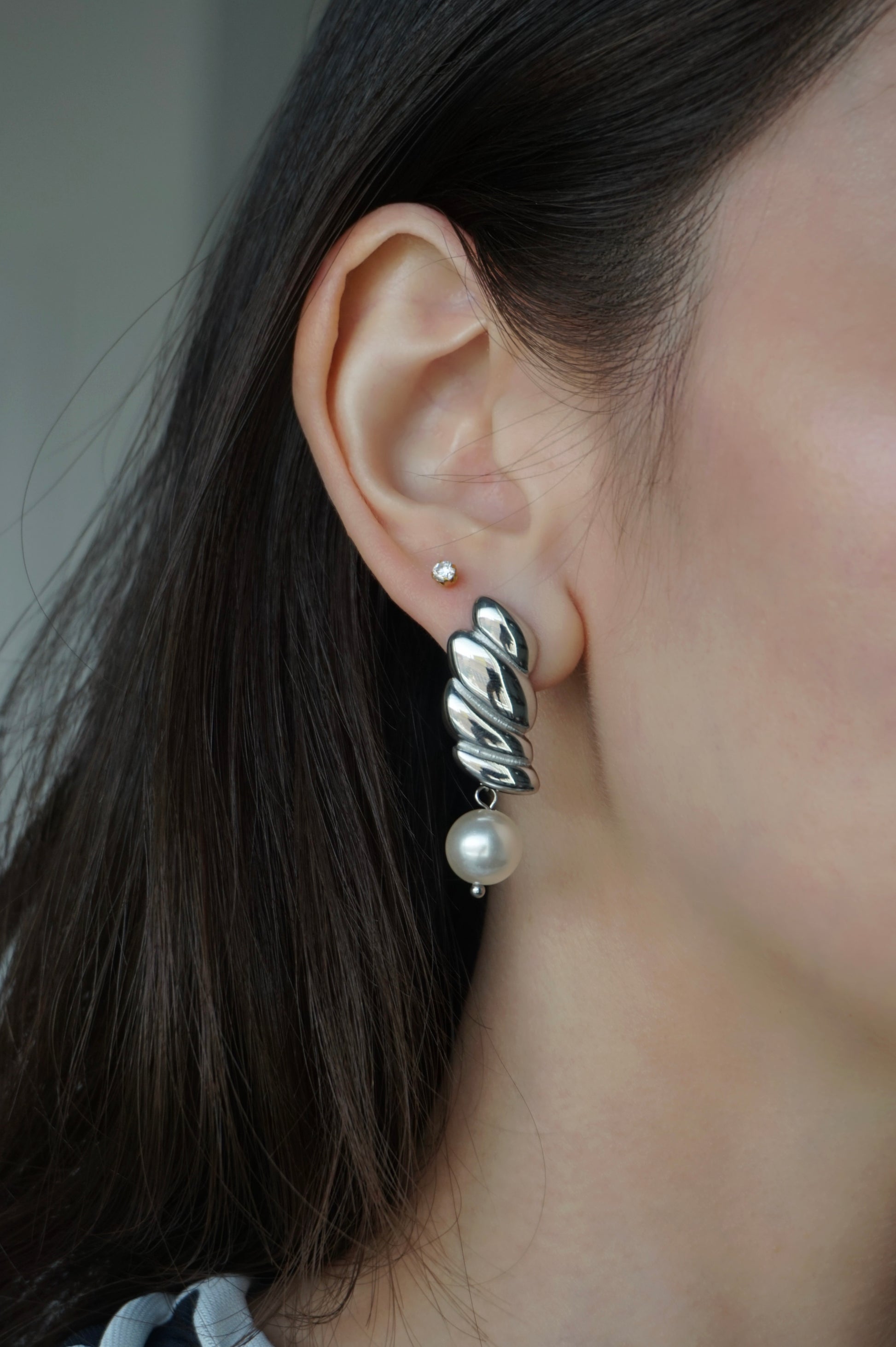 The Wing Earring draws inspiration from the hidden wings delicately embedded in our Nova Earrings, a quiet symbol of freedom and growth. Designed with a luminous round crystal pearl that evokes a soft yet bold statement.